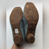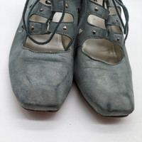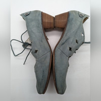 Fidji - Made in Portugal Leather Upper and Lining, Rubber Sole, Wood Heel Color: Smokey Blue Size 40 Euro, 9.5 US Women's Lace-up Oxford Shoe with Cut-outs, 2 inch block heel Gently worn, note condition in photos