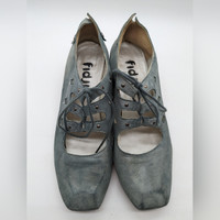 FIDJI Portugal Leather Lace-up Block Heel Blue Oxford 40 Euro US 9.5 Women's