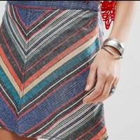 Free People, size Women's Size 2. Linen-blend, colorful Chevron Skirt with lining, single button and zipper closure. First 4 pics are stock images.