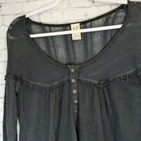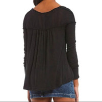 Free People - NWT We The Free Down Under Linen-blend Frayed Black Henley Top Women's XS