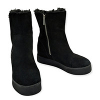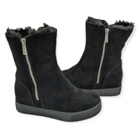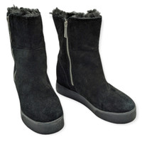 J/Slides NYC, size 6 Women's. Black, leather Suede outer Faux Fur fully-lined inside Double Zipper Fold Boots over to reveal fur, or wear straight zipped. Love these! Very warm and easy to wear. Some marks, but overall EUC.