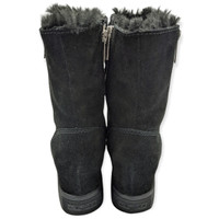 J/Slides Black Suede Faux Fur double Zipper Fold over Boots 6 Women's