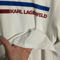 Karl Lagerfeld Paris Double Stripe White Tshirt Unisex Medium