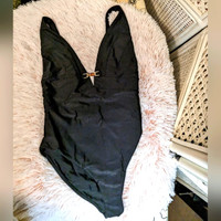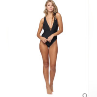 Luna Cara Swim Capri Audrey Plunge Maillot One Piece Black Swimsuit Large 36/38