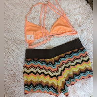 Two Piece Listing Missoni for Target, size XS Women's/Juniors. Chevron Terrycloth with wide brown waistband, hand pockets. Cotton/Polyester Matching Coral Triangle Bikini Top from Target, size Small