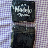 Modelo Cerveza Especial embroidered in white thread on navy sweatband for wrist. Individually wrapped. Listing is for 2 bands.