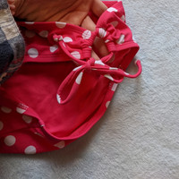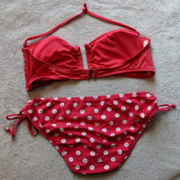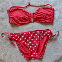 Mossimo 2 piece Bikini Solid pink halter top Size Large Pink and White Polka dot bottoms with ties, size Medium Gently used