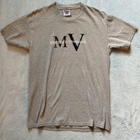 Lee Dungarees MV Martha's Vineyard Heathered Grey Tshirt with white letters and two large, black capital letters: MV Size Men's Medium VGUC