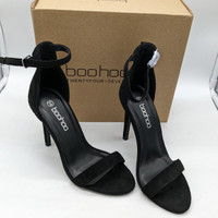 Boohoo New, in box! Barely There Basic Heels in color black Simple toe strap and buckle closure strap around ankle 4" Heel Women's Size 5 US UK 3