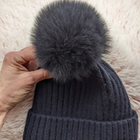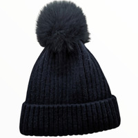 NWT Japanese brand: Jewel Changes / United Arrows, Fox Pom, Nylon Ribbed Winter Hat Pom is extra large and super soft! Women's OS Jewel Changes is fashion brand which it was founded by UNITED ARROWS LTD. in japan(Tokyo-to).