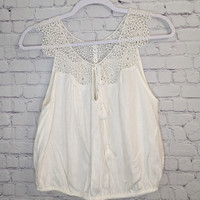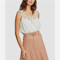 Free People New with Tags! Size Women's XS Detailed embroidery graces the shoulders and wraps around the back and neckline of a flowy linen-blend camisole with tassel ties at the keyhole cutout. Style Name: Free People Clover Croft Crochet Camisole. Style Number: 5823809.