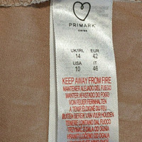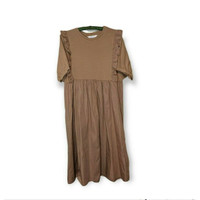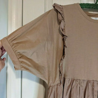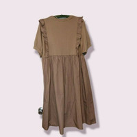 Primark, size women's 10. Mocha colored short sleeved dress with ruffle details. 100% cotton. Like new. length: 42", width at waist: 19.5", arm span width: 34".