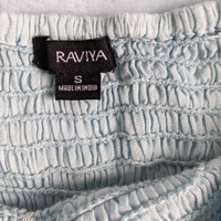 Raviya, size Small. Light blue, Off-shoulder dress. Swimsuit cover-up. Some pulls in fabric, though still in good condition.