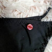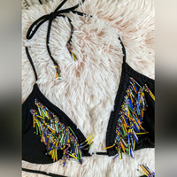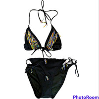 Red Carter Size Small Women's 4/6 (size chart in pictures) 2pc String Bikini Black with Colorful Beads along Triangle Tip and ends of Strings of top and bottoms Excellent Condition *tag shows wear