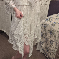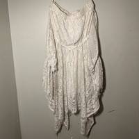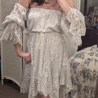Shona Joy Sold @ Revolve NEW without tags Woman's size 2 White Handkerchief Lace Off-shoulder Dress with lining Gorgeous! Elastic top, tie-ribbon waistband, adjustable sleeves 70% cotton, 20% nylon, 10% polyester. 100% polyester lining. Summer wedding, Resort, Cruise, bohemian, fairycore, romantic