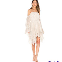Shona Joy Revolve Handkerchief Lace Off-shoulder Dress NWOT US2