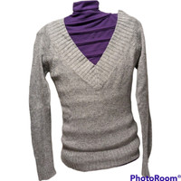 Sybilla Basic Sweater Size Women's Medium Color: Grey Deep Vneck Front with Vneck back, Ribbed Trim Very Soft! Blend of Viscose/Nylon/Cotton/Angora Excellent condition! Flat laid Measurements: chest 16", pit to waistline 15", pit to sleeve end 20", neck opening 12"