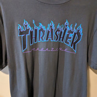 THRASHER Magazine Blue Flames Charcoal SS T-shirt EUC Unisex Small