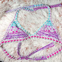 Torque D'Sol Brazilian Beachwear Reversible Triangle Bikini Top Women's Small Like new!