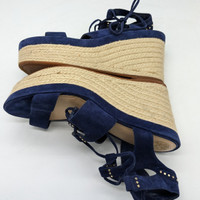 Vince Camuto - VINCE Blue Suede Espadrille Strappy Lace-up Wedge Sandals Women's 7.5 VGUC