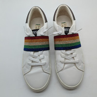 Vintage Havana Houston White Lace-up Sneakers Sparkle Rainbow Elastic Band across laces Size Women's 8.5 Euro 38.5 Man-made materials Very minimal wear - some scuffs or signs of use as shown in photos
