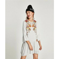 Zara Trafulac Fall Floral Drop waist Boho Dress Women's Large