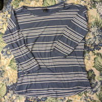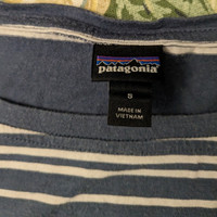 Patagonia Women's size Small 6/8 Top is Blue with white stripes Boat neck Drop-Shoulder 3/4 Sleeves Used condition - some fade/wash wear - no holes or stains