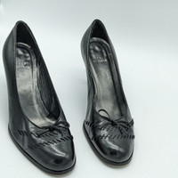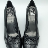 Stuart Weitzman, size 8 Women's. Black, leather rounded toe pump, stitching details and thin bow at vamp. 3 inch heel. Nearly brand new!
