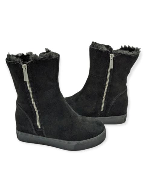 J/Slides Black Suede Faux Fur double Zipper Fold over Boots 6 Women's