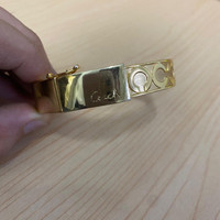 Add timeless elegance to your collection with this Coach Signature C Bangle Bracelet in a polished gold-tone finish. Featuring the brand’s iconic embossed “C” logo design and a secure hinged clasp, this piece brings classic luxury to your look. ⸻ 📝 Product Details: • Brand: COACH • Material: Polished gold-tone metal • Design: Signature C logo all around • Clasp: Hinged with safety bar • Size: Inner circumference ~19 cm (7.5 inches) • Width: Approx. 1.2 cm • Condition: Preloved – light scratches from normal wear (visible in close-up photos) • Packaging: No original box • Origin: Made in China ✨ Best fit for wrist sizes between 16–18.5 cm. A versatile Coach piece for collectors or daily wear. ⸻ 📦 Shipping Info: • Courier: UPS • Dispatch from: Malaysia • Estimated delivery: 5–10 business days, depending on destination • Tracking number will be provided after shipping 💰 Retail Price: ~$85–$150 🎯 Listing Price: USD $55 📸 All photos are of the actual item. Please review carefully before purchase. DM to buy or ask any questions!
