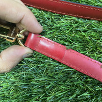Authentic vintage Louis Vuitton Red Adjustable Shoulder Strap – highly sought-after accessory. • Brand: Louis Vuitton • Model Code: 6LKO126K • Origin: Made in France (embossed) • Era: Circa 2008–2012 vintage release • Material: Red calfskin leather with gold-tone brass hardware • Length: Adjustable hook-to-hook 103cm – 120cm • Hardware: Engraved “Louis Vuitton” on both clasps • Condition: Preloved, very good – leather and stitching intact. Minor edge wear (see photos), does not affect usability. Perfect as a replacement strap or mix & match with Speedy, Alma, Neverfull, and other LV classics.