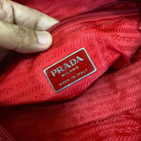 Classic Prada red nylon tote featuring the iconic silver triangle logo. This timeless Italian-made piece is lightweight, functional, and stylish — perfect for everyday use or travel. ⸻ Condition: Good vintage condition. Minor creasing and light yellowing on one corner (see photo). Interior is clean, and the structure is intact. No holes or tears. ⸻ Details: • Brand: Prada • Color: Red • Material: Nylon with silver-tone hardware • Interior: 1 zip pocket • Closure: Top zipper • Handles: Dual nylon straps • Tag: Factory code “7” • Made in Italy ⸻ Measurements (approx.): • Width: 16.5 in (42 cm) • Height: 14 in (35.5 cm) • Depth: 3 in (7.5 cm) • Handle Drop: 10 in (25 cm) ⸻ Additional Notes: • Comes as is (no dust bag or authenticity card) • Ships from Malaysia • Shipping not included – please message for rates or to arrange • Open to reasonable offers ⸻ Let me know if you want to bundle shipping or need more photos. Thanks for checking it out!