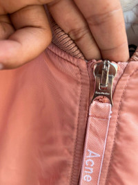ACNE STUDIOS PINK JACKET Style : Jacket Material : Polyster Size : 38 Condition : have an issue, one zipper head broken but other zipper work normaly, have small stains near collar, check piture for more detail, any question please contact us Note : Dont Expect This Item Like A New ( Its Old Vintage Condition ) Please Check Picture Or Ask To Make U Sure About This Item * No Refund You Buy Than You Agree !!! PLEASE ASK BEFORE YOU BUY Shipping Terms : We Use Express DHL 7-10 Delivery