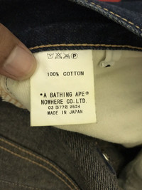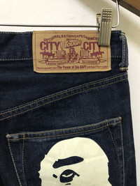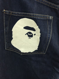 Bathing Ape Jeans Design Waist: 31" inches Outseam: 39" inches Inseam: 27" inches Condition 8/10 Made in Japan Material Cotton PAYMENT And SHIPPING: ■Accept "PAYPAL" Only ■This item will be ship along with Tracking Number after received a completed payment. ■After 7-14 days You can trace the parcel via Post Malaysia Website : http://www.pos.com.my/postal-services/quick-access/?track-trace ■Expected Shipping period takes within 14-21 days to arrived to its destination around the world. Dear valued customer: ●All Measurements were been measured flat on the floor. ●Please don't expect this item condition is 100% like new unless I have mention it. ●Please Dont worry about Custom tax fees during Shipping because I always declared all items as a Gift and wrote the value lower than original price usually just $10 only. ●Please do not hesitate to contact me if you have any inquiries.Its my great pleasure to have a conversation with customers. Thank you very much for your visit.