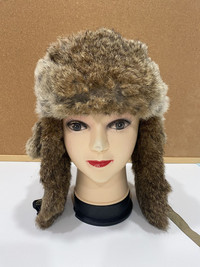 MAD BOMBER FAUX FUR TRAPPER HAT NATURAL RABBIT TRIM