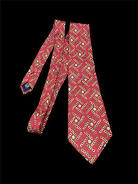 Chanel × Vintage - Chanel Paris Silk Tie Red Gold Chain Pearl Print Logo Design