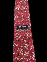 📏 Length - 150cm 📏 Width - 9.5cm (widest part) Brand: Chanel Paris Material: 100% Silk Color: Deep red with gold chain and pearl motifs Condition: (e.g., Excellent vintage condition, no stains or pulls) Made in Italy) This bold and luxurious Chanel tie is perfect for fashion-forward styling or as a collector’s statement piece. Rare chain and pearl motif in classic Chanel style.”