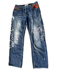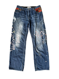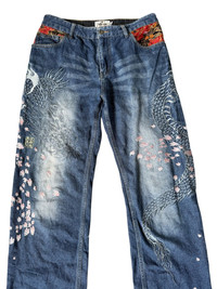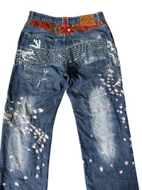 JAPANESE ART DESIGN DENIM KARAKURI TAMASHII WAIST:- 31” INCHES OUTSEAM:- 40” INCHES INSEAM:- 29” INCHES LEG OPENING:- 17” INCHES THIGH:- 22” INCHES MADE IN CHINA CONDITION :- 8/10 PAYMENT And SHIPPING: ■Accept "PAYPAL" Only ■This item will be ship along with Tracking Number after received a completed payment. ■After 7-14 days You can trace the parcel via Post Malaysia Website : http://www.pos.com.my/postal-services/quick-access/?track-trace ■Expected Shipping period takes within 14-21 days to arrived to its destination around the world. Dear valued customer: ●All Measurements were been measured flat on the floor. ●Please don't expect this item condition is 100% like new unless I have mention it. ●Please Dont worry about Custom tax fees during Shipping because I always declared all items as a Gift and wrote the value lower than original price usually just $10 only. ●Please do not hesitate to contact me if you have any inquiries.Its my great pleasure to have a conversation with customers. Thank you very much for your visit.