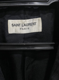 SAINT LAURENT PARIS ARMPIT:- 19” INCHES LENGTH:- 27” INCHES SLEEVE LENGTH:- 24” INCHES MADE IN ITALY refer pictures for the inside broken CONDITION :- 7/10 PAYMENT And SHIPPING: ■Accept “PAYPAL” Only ■This item will be ship along with Tracking Number after received a completed payment. ■After 7-14 days You can trace the parcel via Post Malaysia Website : http://www.pos.com.my/postal-services/quick-access/?track-trace ■Expected Shipping period takes within 14-21 days to arrived to its destination around the world. Dear valued customer: ●All Measurements were been measured flat on the floor. ●Please don’t expect this item condition is 100% like new unless I have mention it. ●Please Dont worry about Custom tax fees during Shipping because I always declared all items as a Gift and wrote the value lower than original price usually just $10 only. ●Please do not hesitate to contact me if you have any inquiries.Its my great pleasure to have a conversation with customers. Thank you very much for your visit.