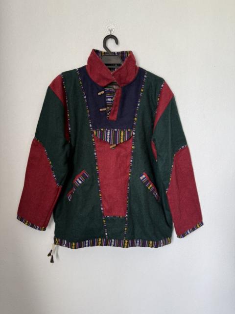 Japanese Brand - Vintage Patchwork Pullover Baja Red Green & Navy Tribal Trim