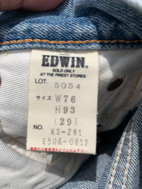 Good day! PLEASE LEAVE YOUR CONTACT NUMBER AFTER PURCHASE FOR DELIVERY PROCESS Brand : Vintage Edwin 505 Painter Distressed Ripped Selvedge Denim Size on tag : 29 [ CONDITION ] Good used condition Distressings are intentional [ MEASUREMENTS ] Waist : 14.5 inches Total length : 37.5 inches Inseam : 27.5 inches Rise : 12 inches Knee : - inches Thigh : 12.5 inches Leg opening : 8.5 inches (Pls kindly check the measurements carefully as it is the actual fit) [ PAYMENT ] Accept PAYPAL only (All items will be shipped within 1-3 working days after payment completed ) [ SHIPPING ] Express shipping : 3 - 7 working days Standard shipping : 14 - 21 working days [ NOTICE ] ▪️All items will be shipped along with the tracking number after postage ▪️Pls kindly leave your contact number, as the shipping company always need the contact number help delivering ▪️All items will be mark purchase as (GIFT) or make value the lowest avoid import tax or fees [ REFUNDS ] No returns, exchanges or refunds Message for any questions Thank you Code : T10
