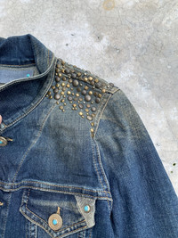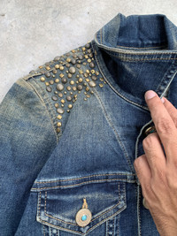 Good day! PLEASE LEAVE YOUR CONTACT NUMBER AFTER PURCHASE FOR DELIVERY PROCESS Brand : Turqoise Beaded Shoulder Denim Jacket Italy Made Size on tag : M [ CONDITION ] Good used condition [ MEASUREMENTS ] Pit to pit : 17.5 inches Length shoulder to hem : 22.5 inches Shoulder to shoulder : 13 inches Sleeve from shoulder : 25 inches Sleeve from neck : 29.5 inches (Pls kindly check the measurements carefully as it is the actual fit) [ PAYMENT ] Accept PAYPAL only (All items will be shipped within 1-3 working days after payment completed ) [ SHIPPING ] Standard shipping : 14 - 21 working days Express shipping : 3 - 7 working days [ NOTICE ] ▪️All items will be shipped along with the tracking number after postage ▪️Pls kindly leave your contact number, as the shipping company always need the contact number help delivering ▪️All items will be mark purchase as (GIFT) or make value the lowest avoid import tax or fees [ REFUNDS ] No returns, exchanges or refunds Message for any questions Thank you Code : 11
