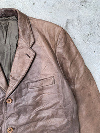 Good day! PLEASE LEAVE YOUR CONTACT NUMBER AFTER PURCHASE FOR DELIVERY PROCESS Brand : Vintage Men's Bigi Cow Hide Blazer Leather Jacket oak Size on tag : M [ CONDITION ] Good used condition Signs of wear [ MEASUREMENTS ] Pit to pit : 22 inches Length shoulder to hem : 30 inches Shoulder to shoulder : 18.5 inches Sleeve from shoulder : 24.5 inches Sleeve from neck : 30.5 inches (Pls kindly check the measurements carefully as it is the actual fit) [ SHIPPING ] Standard shipping : 14 - 21 working days Express shipping : 3 - 7 working days [ NOTICE ] ▪️All items will be shipped along with the tracking number after postage ▪️Pls kindly leave your contact number, as the shipping company always need the contact number help delivering ▪️All items will be mark purchase as (GIFT) or make value the lowest avoid import tax or fees [ REFUNDS ] No returns, exchanges or refunds Message for any questions Thank you Code : 24