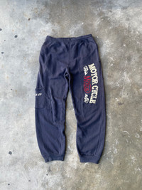 Good day! PLEASE LEAVE YOUR CONTACT NUMBER AFTER PURCHASE FOR DELIVERY PROCESS Brand : Vintage Motorcycle Flames Biker Big Logo Sunfaded Sweatpants Size on tag : M [ CONDITION ] Good used condition Sunfaded Slight pillings might be removable [ MEASUREMENTS ] Waist : 14 inches Total length : 37 inches Inseam : 26 inches Rise : 12.5 inches Thigh :11.5 inches Knee : 9 inches Leg opening : - (Pls kindly check the measurements carefully as it is the actual fit) [ SHIPPING ] Standard shipping : 14 - 21 working days Express shipping : 3 - 7 working days [ NOTICE ] ▪️All items will be shipped along with the tracking number after postage ▪️Pls kindly leave your contact number, as the shipping company always need the contact number help delivering ▪️All items will be mark purchase as (GIFT) or make value the lowest avoid import tax or fees [ REFUNDS ] No returns, exchanges or refunds Message for any questions Thank you Code : nr12