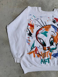 Good day! PLEASE LEAVE YOUR CONTACT NUMBER AFTER PURCHASE FOR DELIVERY PROCESS Brand : Vintage 1994 Tweety Art Painter Fullprint Sweatshirt Size on tag : Large fits M [ CONDITION ] Good used condition [ MEASUREMENTS ] Pit to pit : 23 inches Length shoulder to hem : 24 inches Shoulder to shoulder : - Sleeve from shoulder : - Sleeve from neck : 26 inches (Pls kindly check the measurements carefully as it is the actual fit) [ PAYMENT ] Accept PAYPAL only (All items will be shipped within 1-3 working days after payment completed ) [ SHIPPING ] Standard shipping : 14 - 21 working days Express shipping : 3 - 7 working days [ NOTICE ] ▪️All items will be shipped along with the tracking number after postage ▪️Pls kindly leave your contact number, as the shipping company always need the contact number help delivering ▪️All items will be mark purchase as (GIFT) or make value the lowest avoid import tax or fees [ REFUNDS ] No returns, exchanges or refunds Message for any questions Thank you Code : T7