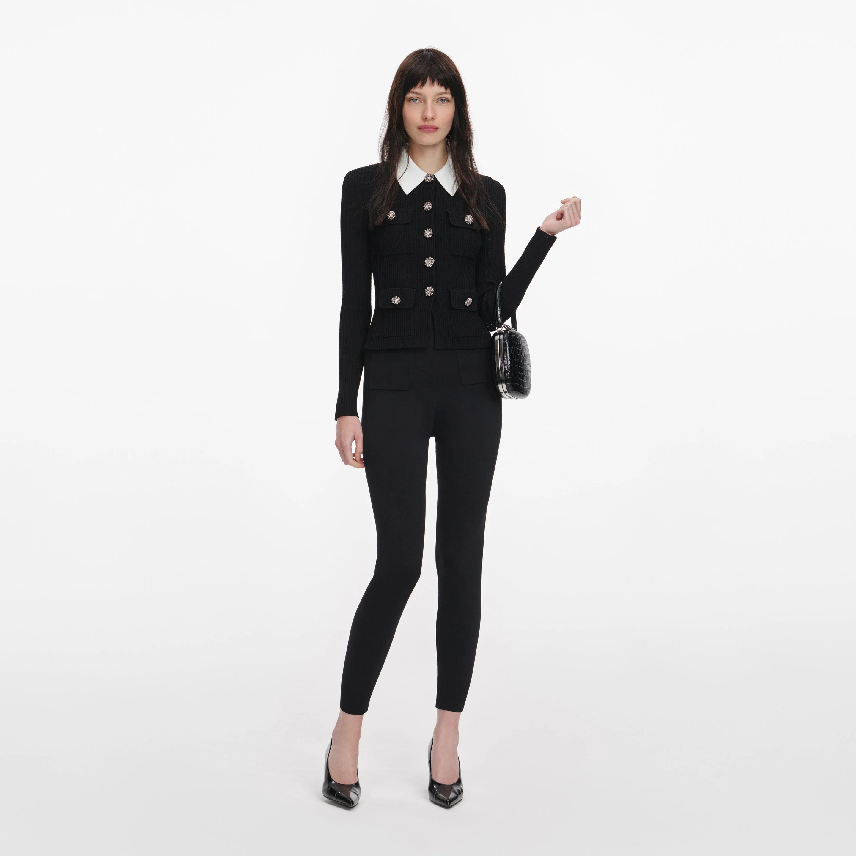 Details & Fit Cut from black pointelle knit for a soft yet sculpted fit, this top's preppy contrast collar and shining buttons make it a no-brainer for all events. Style it with jeans and chic midi skirts alike. - True to size - Fabric has stretch - Button closure down front - Contrast collar - Diamante accents - Model is 5ft10/178cm and wears a size S Composition 73% Viscose 16% Polyester 10% Polyamide 1% Elastane