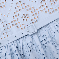 Details & Fit Light and airy, this blue cotton broderie top brings a breezy feel to summer dressing. Framed by scalloped edges and a belted peplum waist, flower motifs add chic detail to its shoulder straps. - Fitted style - Zip closure at back - Adjustable spaghetti straps - Removable belt - Matching skirt available - Model is 5ft10/178cm and wears a size UK 6 Composition 100% Cotton