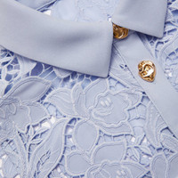 Details & Fit Classically feminine in blue lace, this maxi dress defines effortless elegance. Framed by a flattering revere collar and belted waist – match its gold buttons with a pair of our statement earrings. - True to size - Relaxed fit - Button closure down front - Detachable cami lining - Removable belt - Model is 5ft10/178cm and wears a size UK 8 COMPOSITION Main Fabric: 100% Polyester Lining: 100% Polyester Trim Fabric: 100% Polyester Belt: 100% Polyester