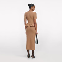 Details & Fit Golden accents meet a super chic silhouette in this knit dress, which pairs a sculpted midi frame with a rich caramel hue. A peplum waist adds extra elegance – wear with heels for a night out.Golden accents meet a super chic silhouette in this knit dress, which pairs a sculpted midi frame with a rich caramel hue. A peplum waist adds extra elegance – wear with heels for a night out. - True to size - Fabric has stretch - Button closure down front - Peplum at waist - Unlined style - Model is 5ft10/178cm and wears a size S - True to size - Fabric has stretch - Button closure down front - Peplum at waist - Unlined style - Model is 5ft10/178cm and wears a size S COMPOSITION 67% Polyester 24% Cotton 7% Wool 2% Metallised Fibre 67% Polyester 24% Cotton 7% Wool 2% Metallised Fibre