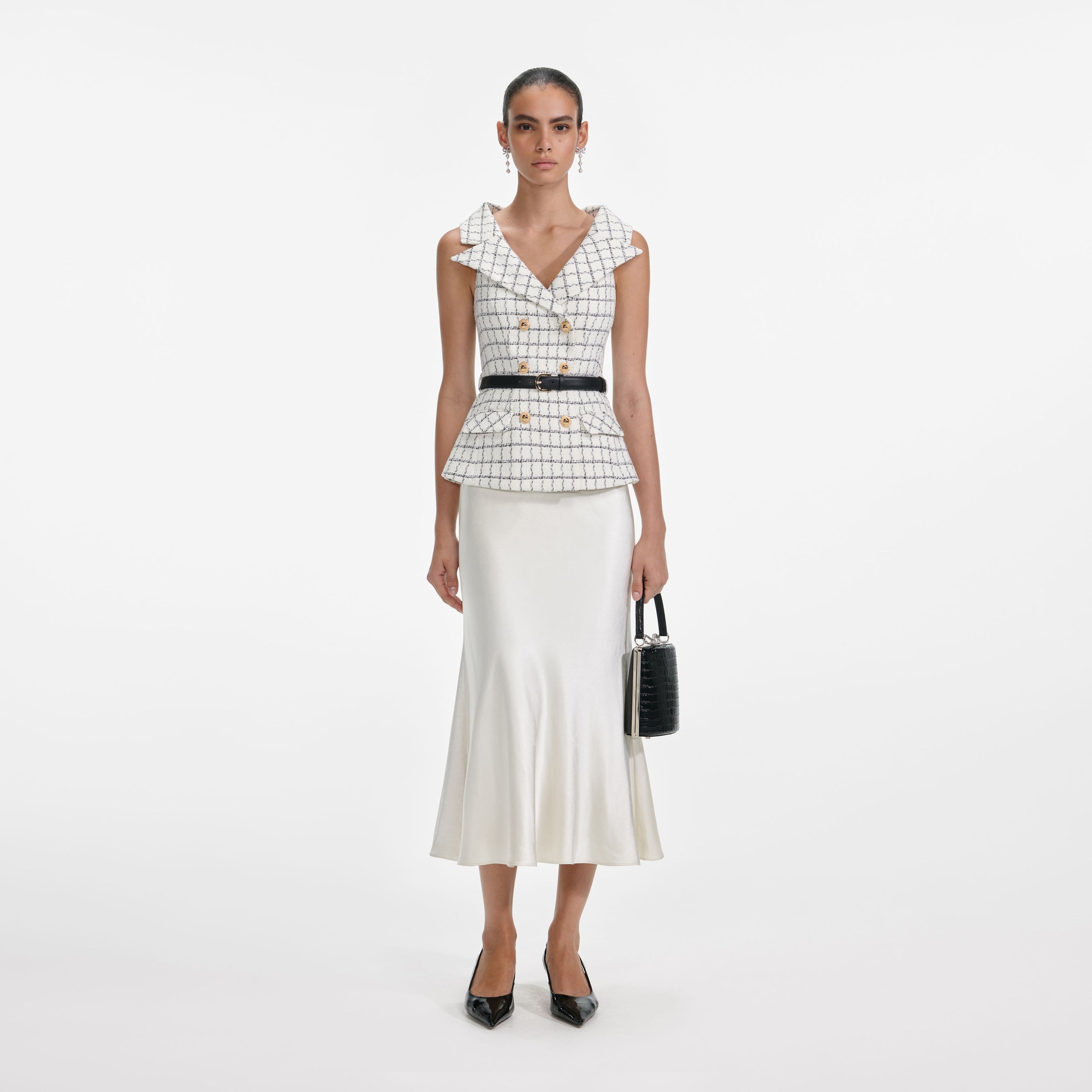Details & Fit A lesson in masterful tailoring, this midi dress is cut from cream check boucle. Its Bardot neckline adds extra intrigue above the belted peplum waist and pleated skirt – ready for the next soiree.A lesson in masterful tailoring, this midi dress is cut from cream check boucle. Its Bardot neckline adds extra intrigue above the belted peplum waist and pleated skirt – ready for the next soiree. - Fitted style, take one size up if between sizes - This style has minimal stretch - Button closure down front - Functional pockets - Removable belt - Model is 5ft10/178cm and wears a size UK 6 - Fitted style, take one size up if between sizes - This style has minimal stretch - Button closure down front - Functional pockets - Removable belt - Model is 5ft10/178cm and wears a size UK 6 COMPOSITION Main Fabric/Placket 1: 99% Polyester 1% Metallised Fibre (Exclusive Of Decorations) Main Fabric 2/Lining: 100% Polyester Belt: Face:100% Cow Leather Backing: Coating: Polyurethane Base Fabric: 100% Polyamide Main Fabric/Placket 1: 99% Polyester 1% Metallised Fibre (Exclusive Of Decorations) Main Fabric 2/Lining: 100% Polyester Belt: Face:100% Cow Leather Backing: Coating: Polyurethane Base Fabric: 100% Polyamide